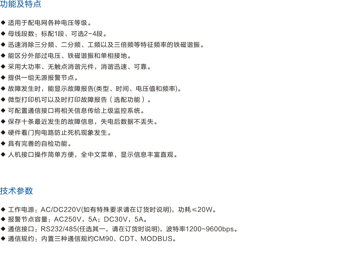 微機(jī)消諧裝置是我公司研制的新型智能化電力諧振消除裝置,使用簡(jiǎn)單方便,無(wú)需維護(hù),能迅速地消除各種頻率的鐵磁諧振,準(zhǔn)確率高。同時(shí)可根據(jù)用戶需要將相關(guān)信息打印或通過(guò)通信接口傳給上級(jí)監(jiān)控系統(tǒng),適用于無(wú)人值守變電站。